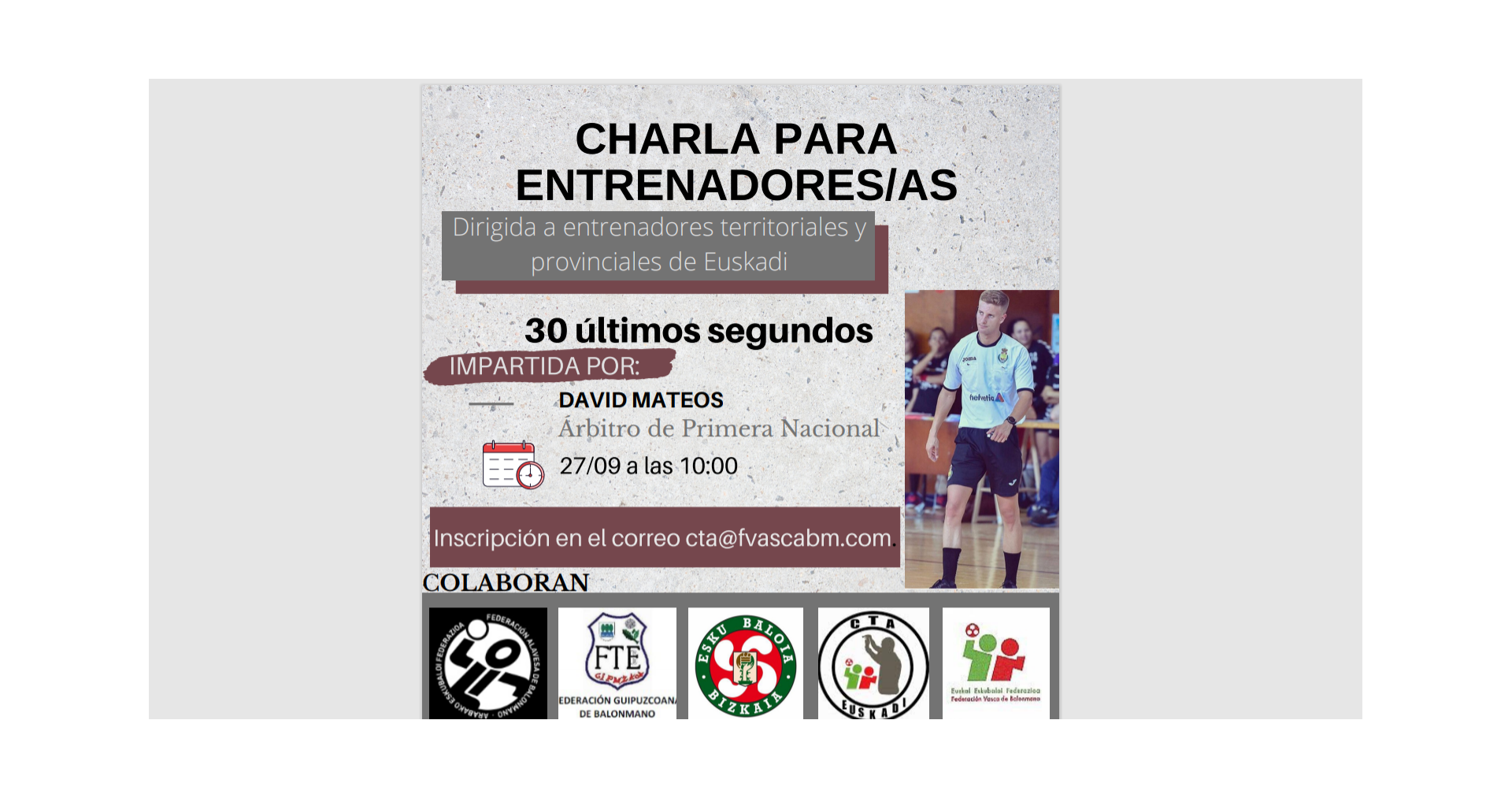 Kaixo, Euskadiko arbitroen batzordeak partidako azken 30 segundoei buruzko prestakuntza emateko proposamen eta eskaera batzuk jaso ondoren, egitea eta denok gonbidatzea erabaki du. Euskadiko...