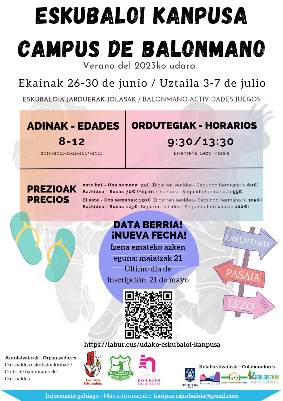 2010etik 2014ra bitarteko neska-mutilei zuzenduta dago. Bi txanda egongo dira: – Ekainak 26-30 – Uztailak 3-7 (bietako edozein asteetara apunta zaitezkete edo bi asteetara)...